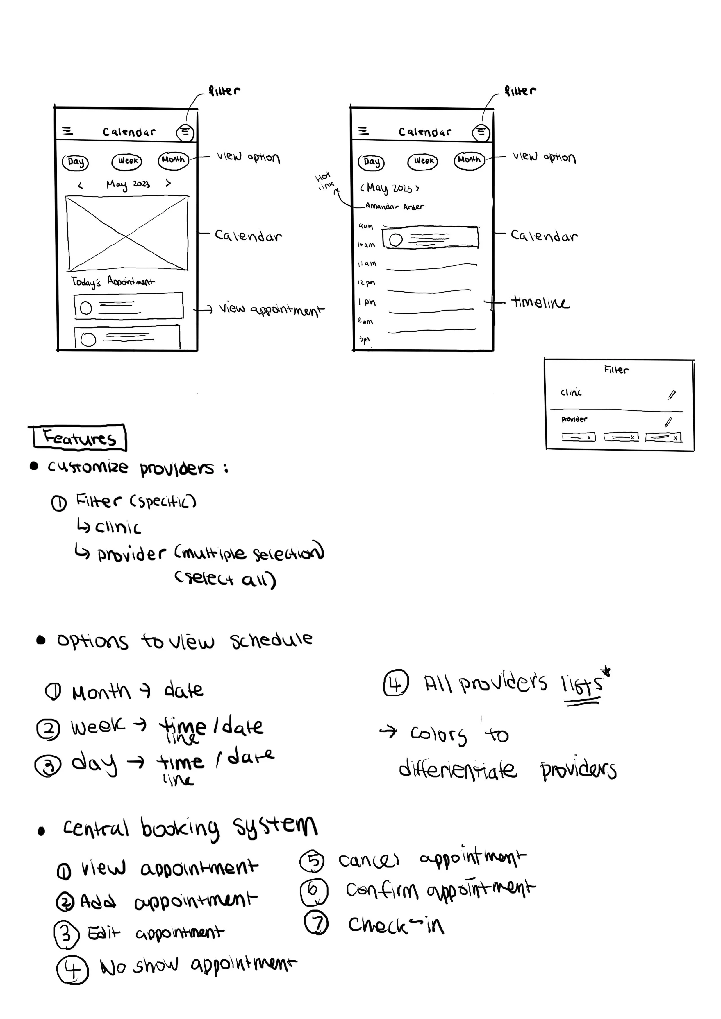Customization Providers - Users require a system where they can easily filter and compare schedules of multiple providers to book appointments.